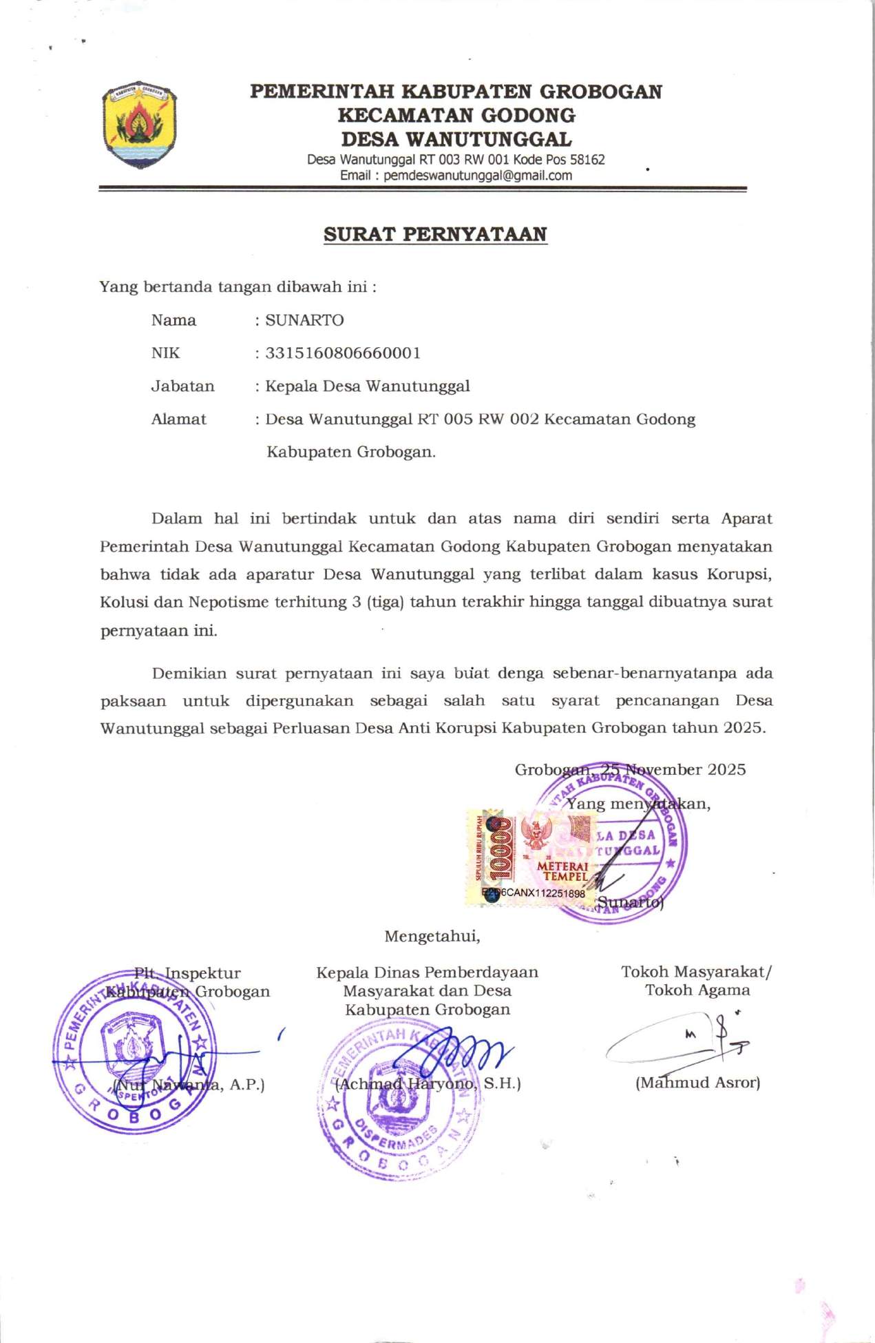 Data Populasi Desa Wanutunggal, Kecamatan Godong, Kabupaten Grobogan